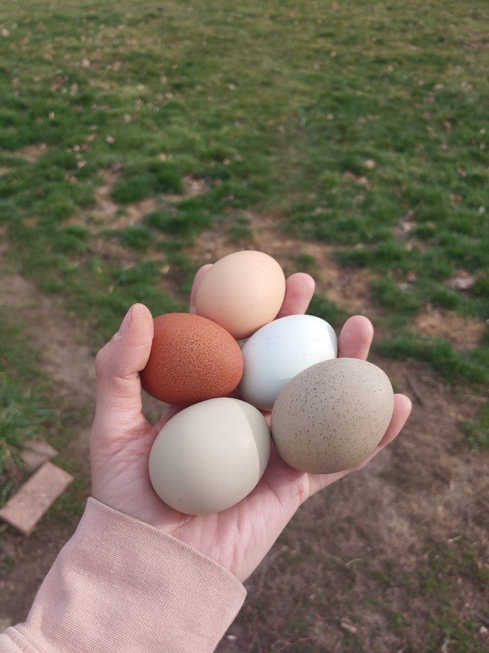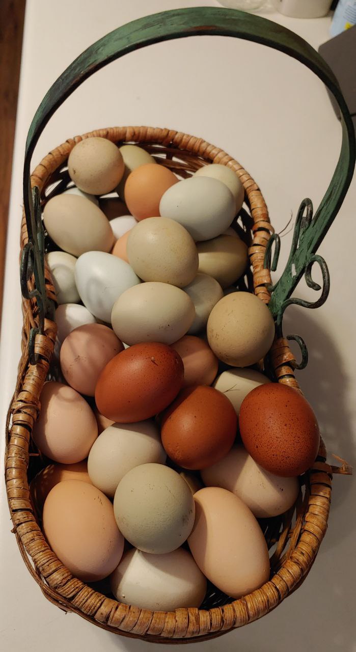 These beautiful eggs are lovingly brought to you by Rosie, Hawk, Rufio, Mama, Dr. Pecker, Coco, Tyrannosaurus Pecks, Harry Clucken, Molting Myrtle, Hermione Free-Ranger, Henny Weasley, Hei-Hei, Mary Poopins, Henzilla, Chicken Little, Nugget, and the rest of our feathered ladies.